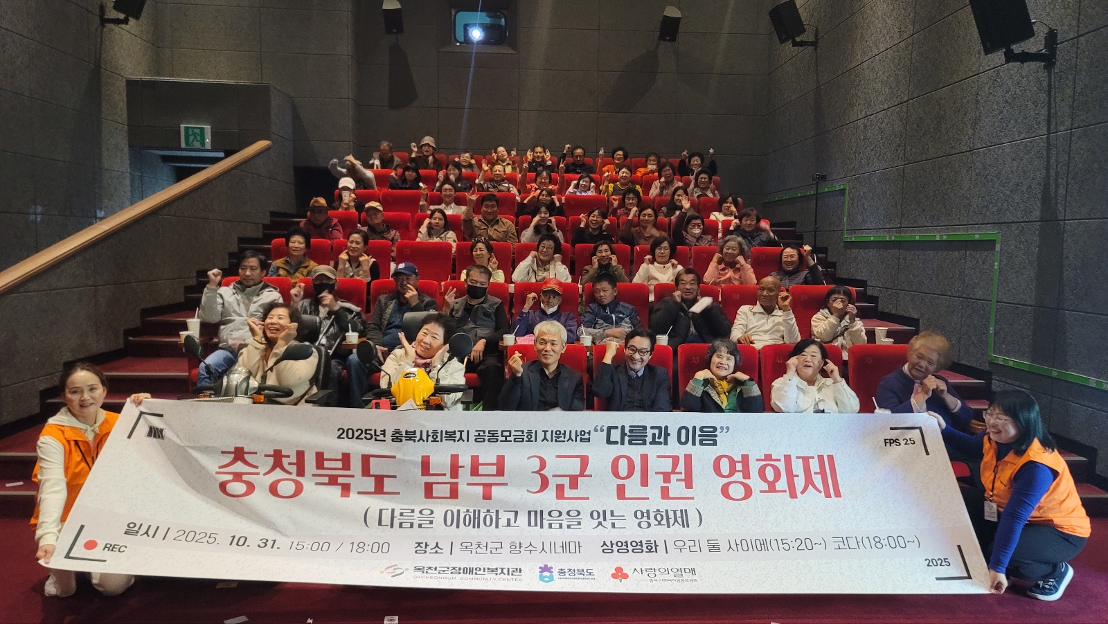 옥천군장애인복지관, ‘다름과 이음’ 남부 3군 인권 영화제 성료 충북 남부 3군(옥천군, 영동군, 보은군) 인권 영화제 성황리 마무리 충청북도 사회복지 공동모금회 지원사업, 다양한 기관과 주민들이 함께한 인권 감수성 확산의 장 전석복지재단이 운영하는 옥천군장애인복지관(관장 황명구)은 2025년 충청북도 사회복지 공동모금회 지원사업 [다름과 이음]의 남부 3군 인권 영화제는 다름을 이해하고 마음을 잇는 영화제라는 주제로 충청북도 남부 3군(옥천군, 영동군, 보은군)에서 순차적으로 진행되었으며, 총 250여명의 지역주민이 함께 했다. 9월 2일(화) 영동군 인권 영화제를 시작으로 10월 31일(금), 옥천군 인권 문화제, 그리고 11월 12일(수) 보은군에서 제3차 인권 영화제를 끝으로 올해 영화제가 성황리에 마무리 되었다. 특히 이번 영화제에는 지역주민으로 구성된 영화제 서포터즈 10명이 함께 참여해 행사 운영을 도왔다. 서포터즈들은 영화제의 준비 단계로 영화제 기획, 영화선정, 홍보, 현장 안내, 캠페인 부스 운영등 다양한 역할을 맡아 지역주민이 함께하는 인권 영화제에 의미를 더했다. 옥천 인권 문화제에는 영화관람 외에도 다양한 체험형 캠페인 부스가 함께 운영되어 주민들의 참여를 더욱 이끌어냈다. △충청북도 도민소통과 문화예술공연(마술) △ 국가인권위원회 인권 캠페인 △ 옥천군정신건강복지센터의 생명존중캠페인 △ 옥천군장애인복지관의 장애인식개선 캠페인 △ 함께노리봉사단의 전통놀이 체험등이 진행되었으며, 이를 통해 지역주민들이 자연스럽게 문화와 인권을 체험하고 소통할 수 있을 장이 마련되었다. 영화제에 참여한 주민들은 “영화를 통해 인권과 장애에 대한 메시지가 잘 전달되어 감동적이었다.”,“장애를 가진 사람으로서 타인의 어려움을 충분히 이해하지 못했다는 반성을 하게 되었다.”,“장애인의 현실적인 삶을 다룬 영화제를 통해 인식이 새로워졌다.”등 영화제에 대한 진솔한 소감을 전했다. 이번 영화제는 옥천군장애인복지관을 중심으로 △영동군장애인복지관 △보은군노인장애인복지관등 여러기관이 함께 하여 각 지역의 주민들에 대한 영화제 홍보를 함께 했다. 옥천군장애인복지관 황명구 관장은 “남부 3군 인권 영화제를 통해 지역사회가 장애와 인권을 함께 생각하는 뜻깊은 시간을 가졌다.”며 앞으로도 장애인과 비장애인이 서로의 다름을 이해하고 존중하는 문화가 확산되도록 다양한 프로그램을 이어가겠다.“고 전했다. ‘다름과 이음’ 사업은 인형극과 영화제를 통해 지역주민의 장애인식과 인권 감수성을 높이는 것을 목표로 하며 옥천군장애인복지관은 지역사회 구성원들이 장애와 인권을 올바르게 이해하고 서로를 존중하는 문화가 확산될 수 있도록 지속적인 노력을 이어갈 계획이다. |